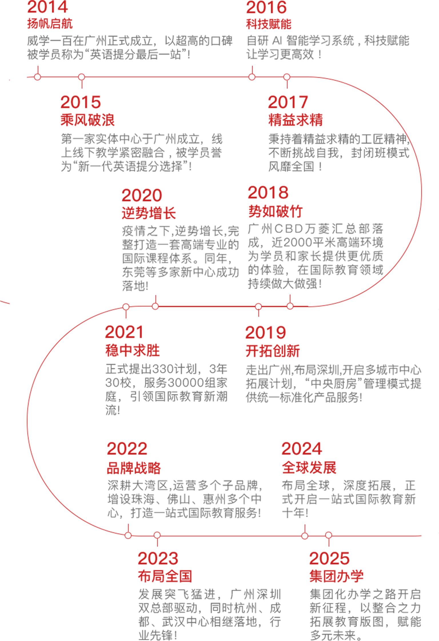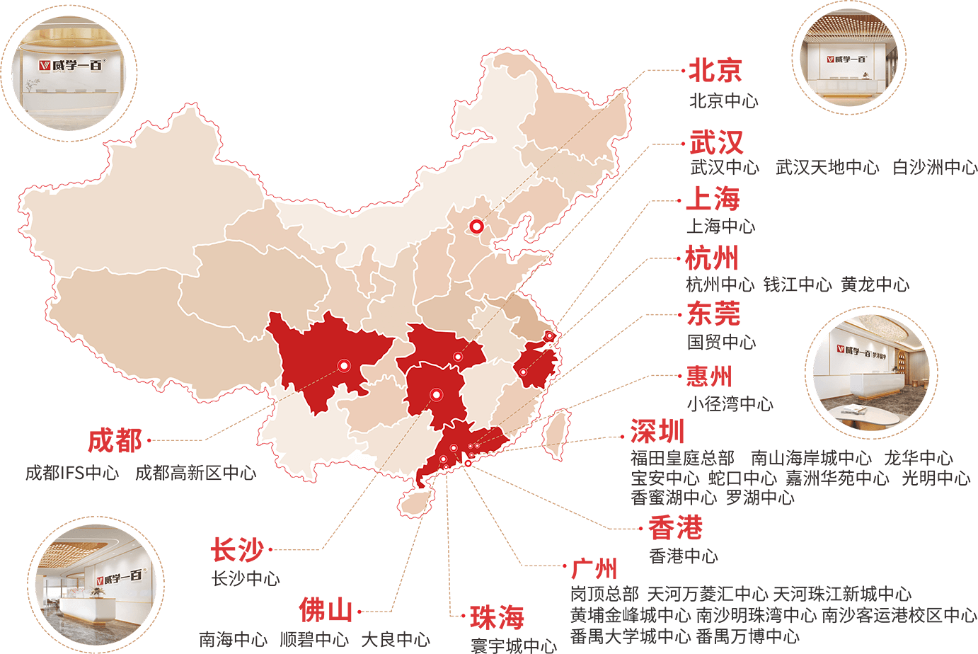 经过多年深耕与发展,目前威学一百在全国多个城市已经成立了40+中心!!