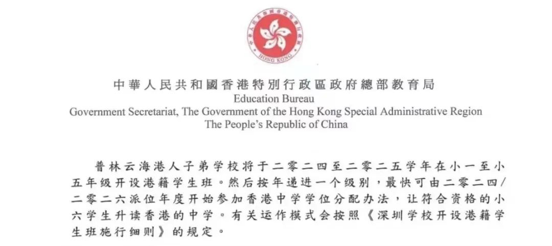 ·深圳普林云海港人子弟学校获得香港中学派位资格