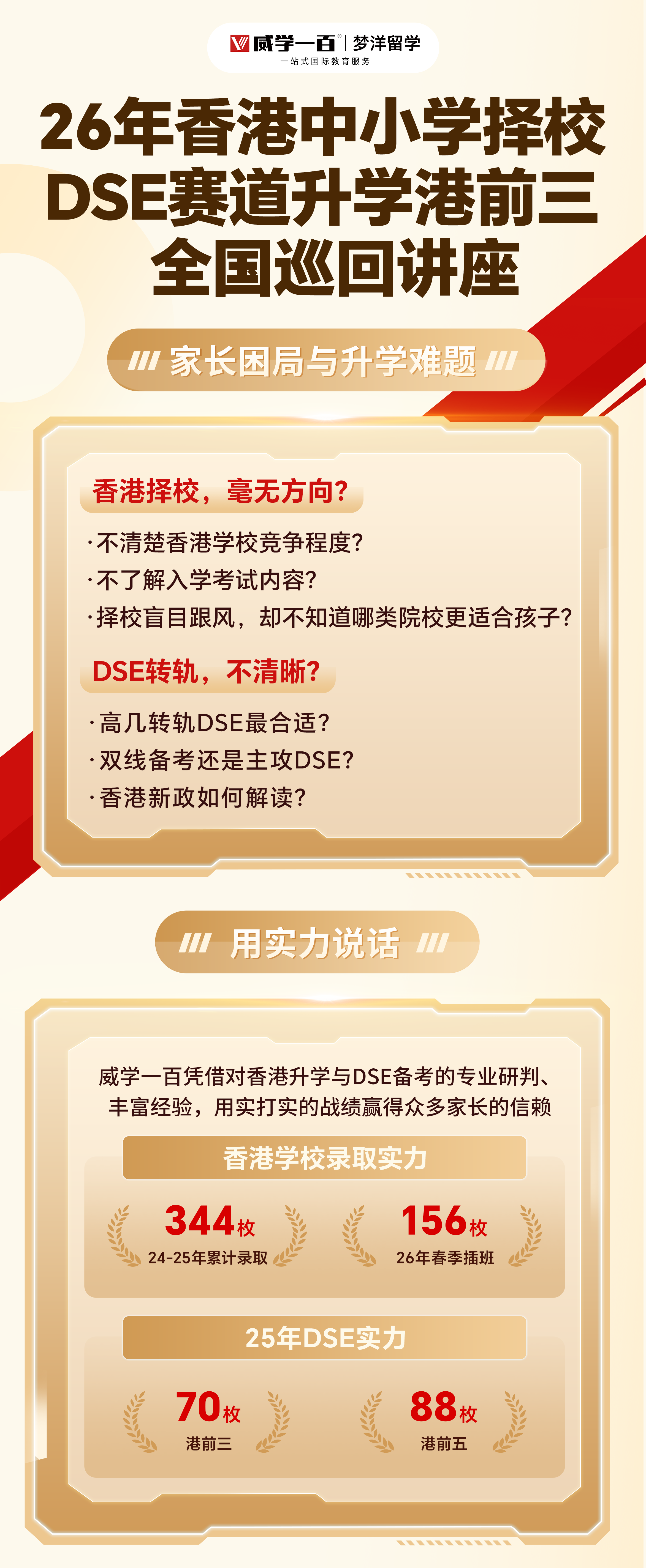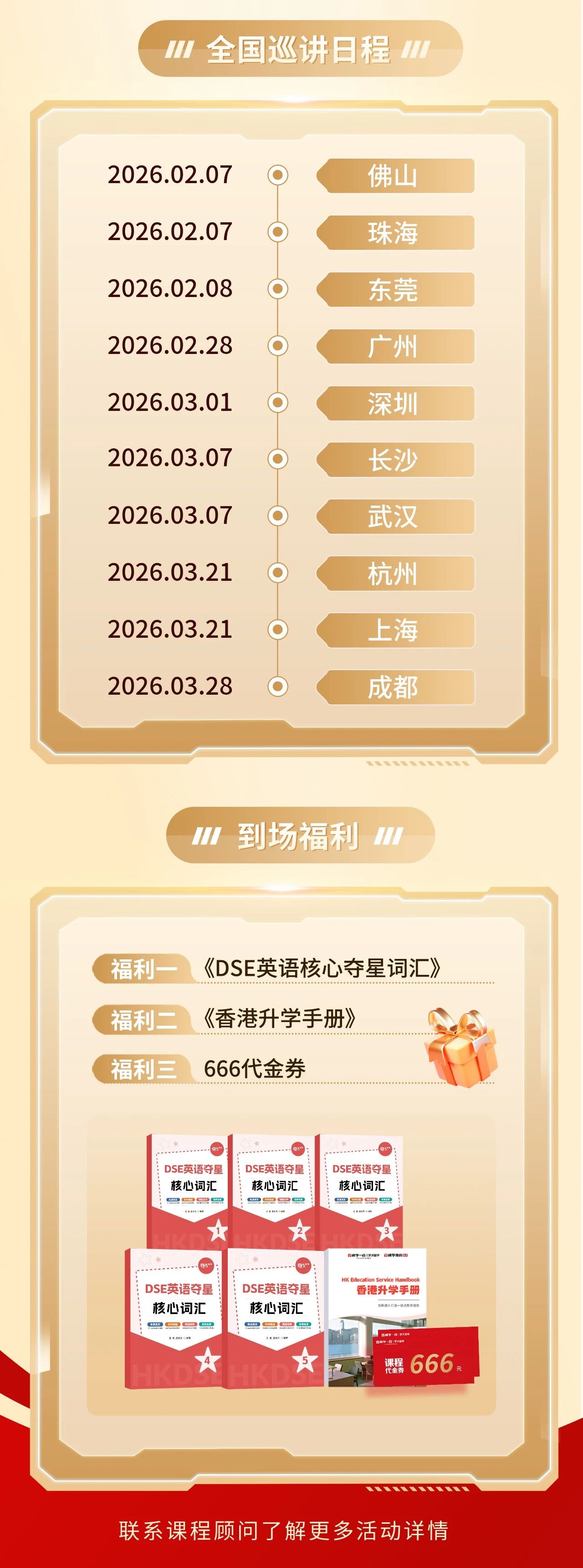 2月7日开启!26年香港中小学择校&DSE赛道升学港前三全国巡讲,与名师天团面对面!