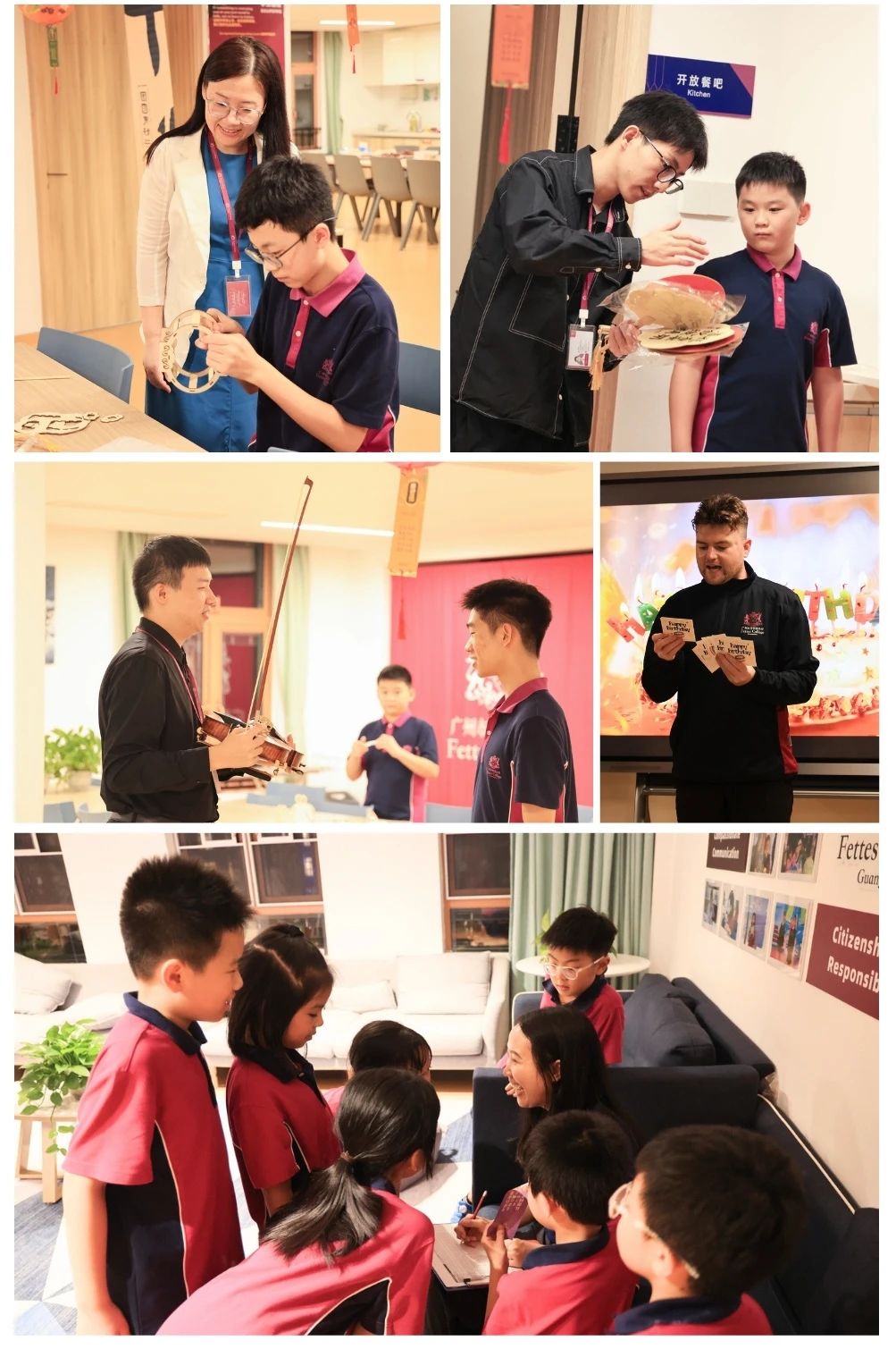 在学习中,广州斐特思采取双师教学制度,为每个班级配备一中一外双班主任,提供全方位导师指引与关怀;在生活里,也为寄宿的孩子们配备中外宿舍管理团队,全天候关注学生的日常和成长。