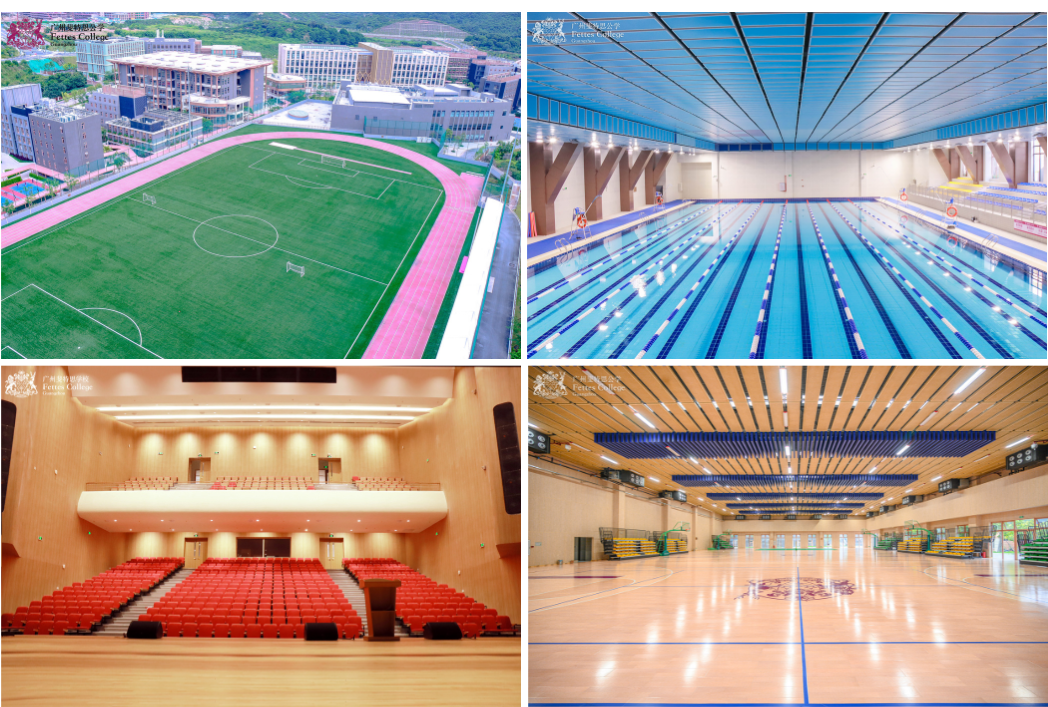 学校占地总面积近200亩,配备各类国际超一流场地设施:3座图书馆、50余间独立琴房、FIFA认证足球场、FIFA认证篮球场、室内奥林匹克标准恒温泳池、幼儿园专用25米恒温泳池、2个大剧院、专业黑匣子剧场、飞行仿真训练中心、攀岩墙、壁球馆、网球场、健身房、陶艺室、缝纫室与800平米恒温室内马术馆。