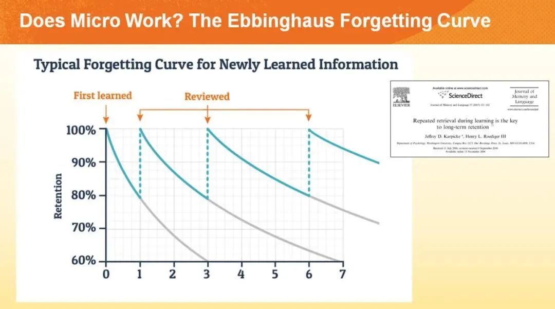 据图可知,随着天数的增加(横坐标),记住的内容也在减少:当天遗忘的速度最快,如果不复习的话,在第三天基本全部忘掉。