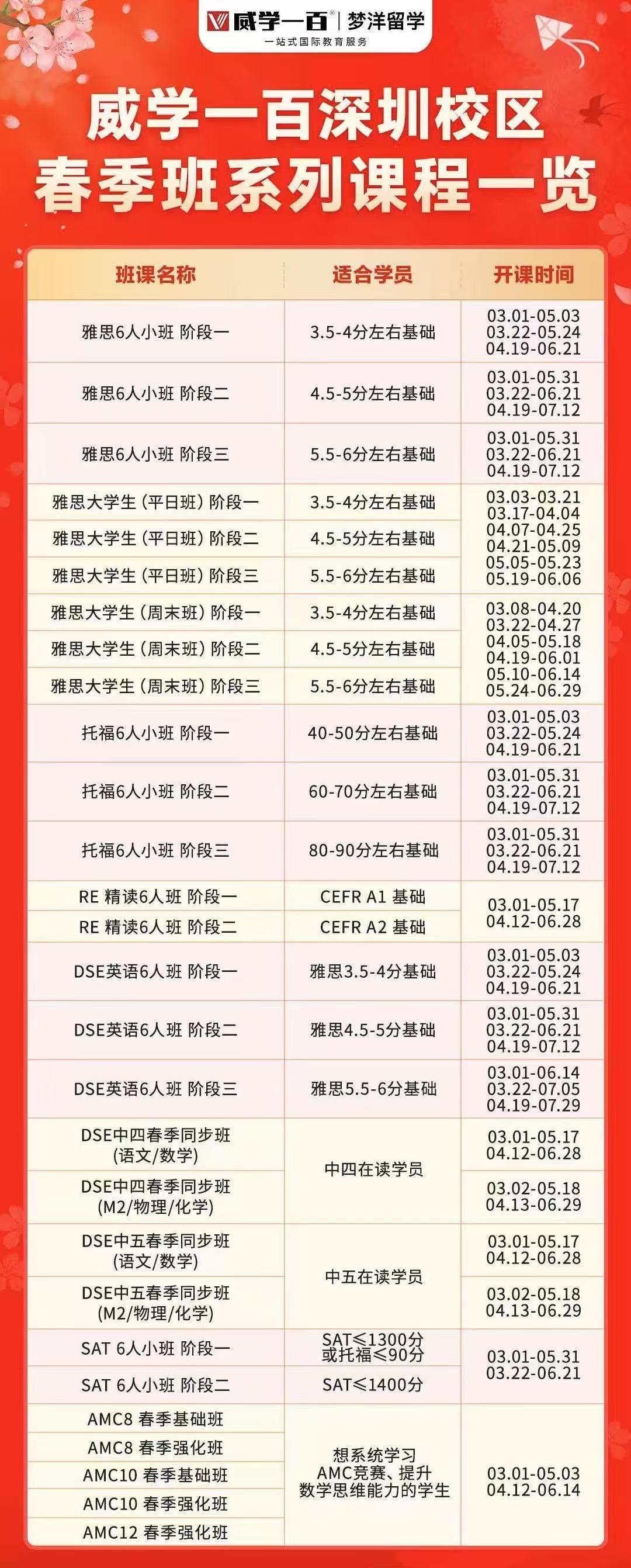 威学深圳校区春季班报名开启!可选托福/雅思/RE/DSE/SAT/AMC多种课程!速来加入我们,为梦想蓄力,迎接学习新挑战